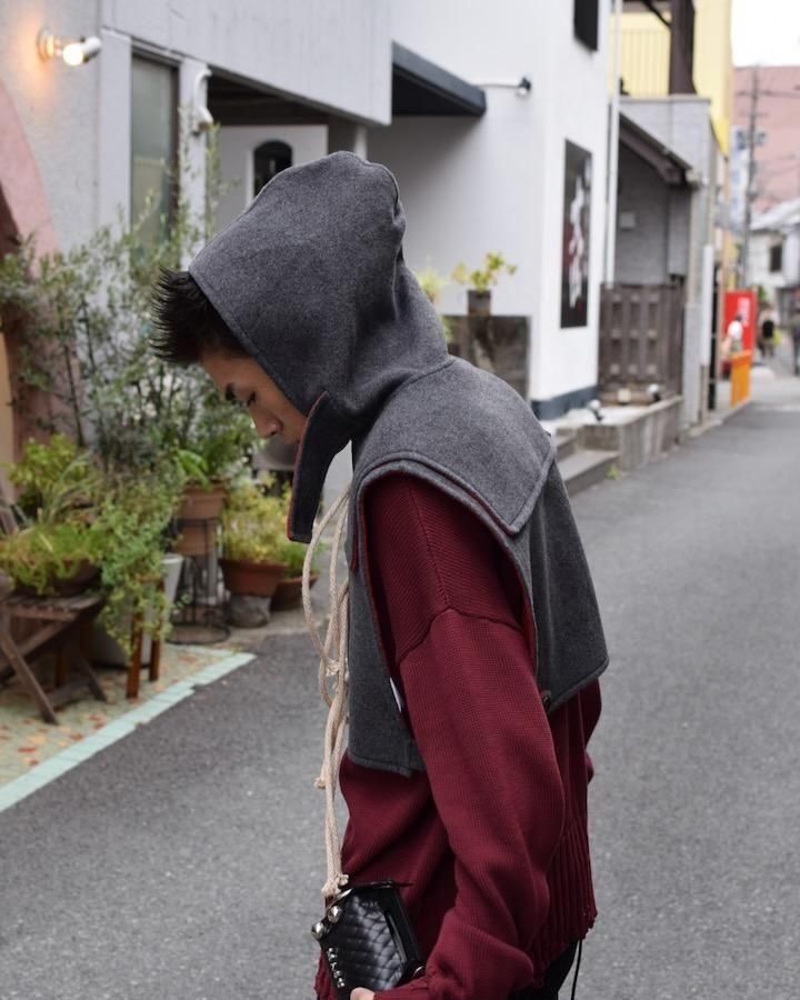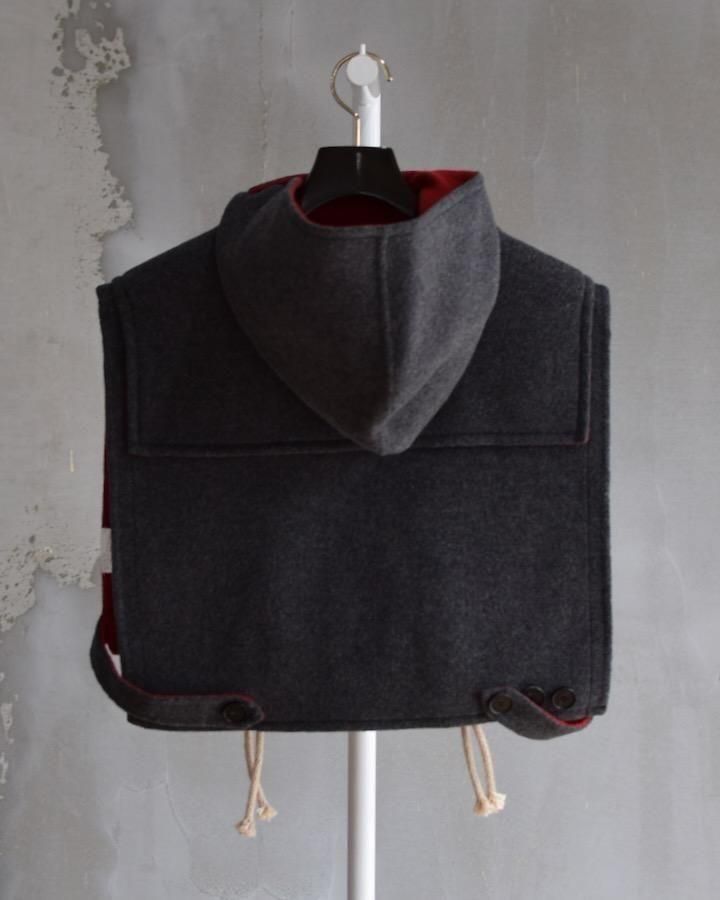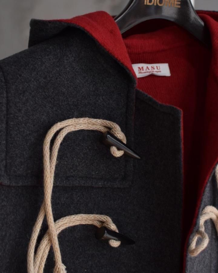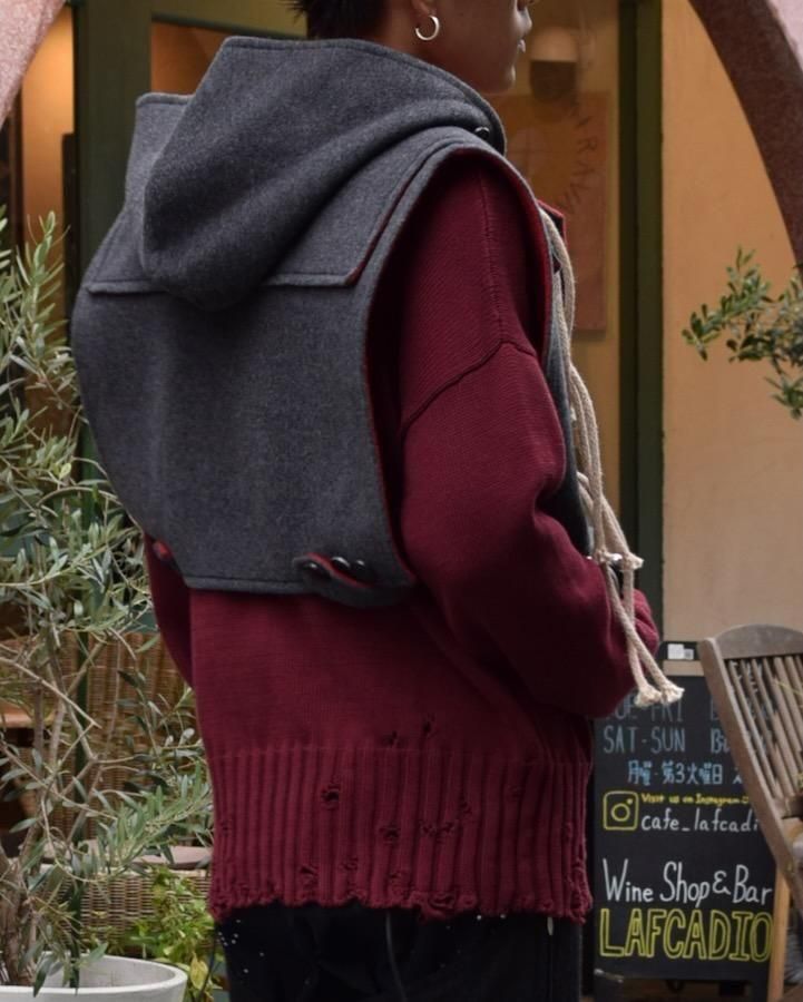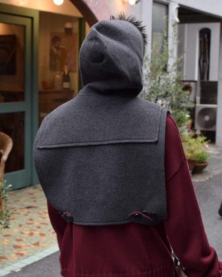 ダッフルコートを解体したようなデザインや、うなだれた紐はそのままに生地や付属の変更、フードをより深くするなど、細やかにアップデートされた。