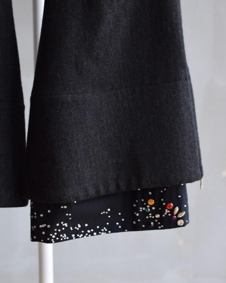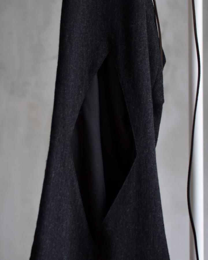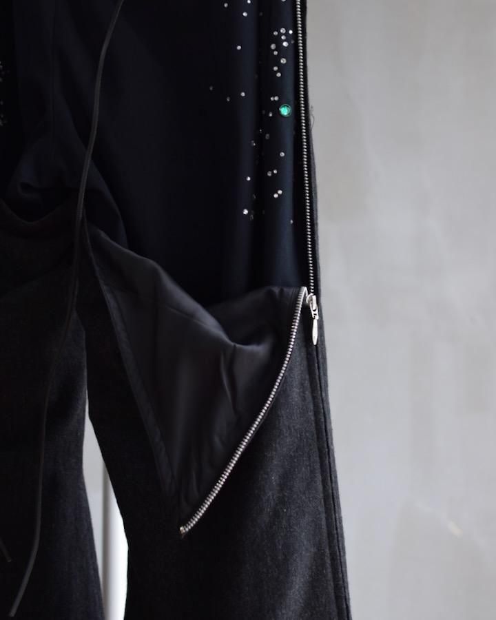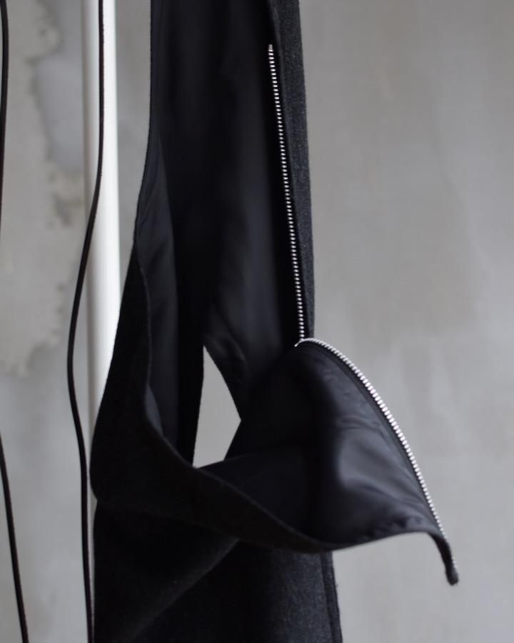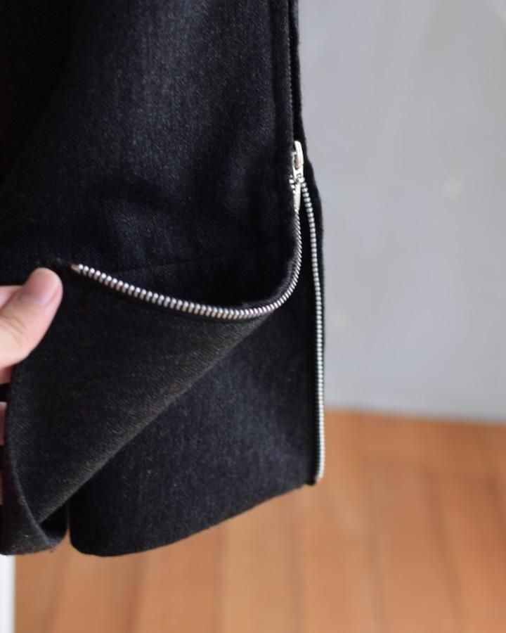また、脇の逆開ファスナーの開閉によってシルエットを変えての着用が可能。