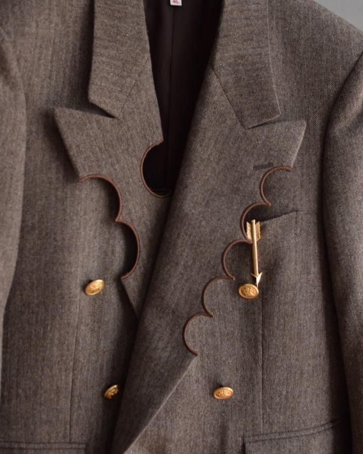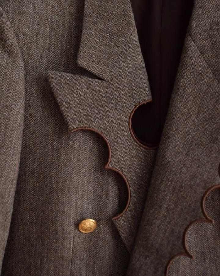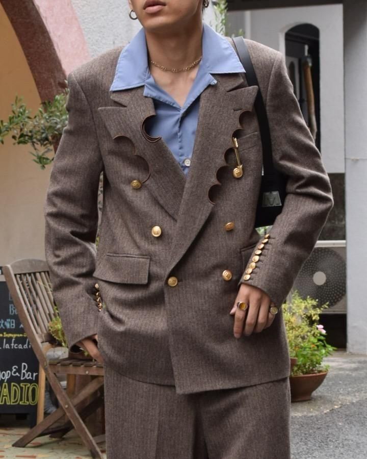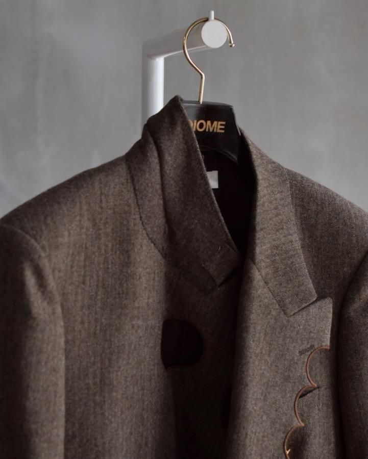 FW22コレクションで発表された、ブレザーという意匠にアイロニーを込めた”NIBBLED BLAZER”をベースにデザイン。