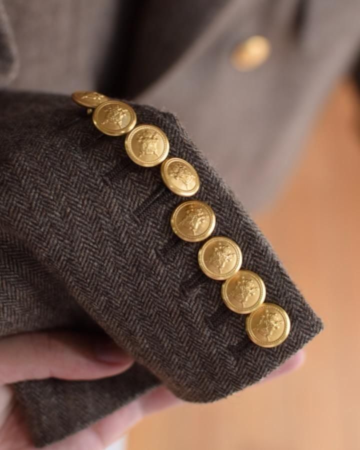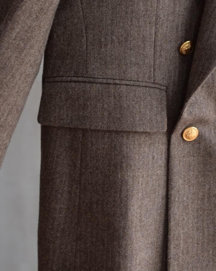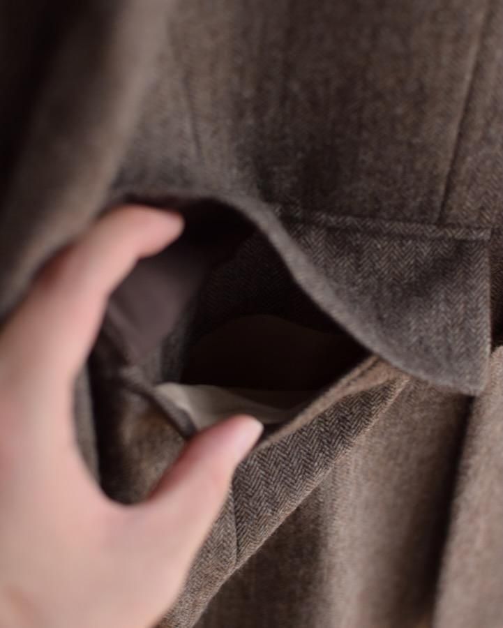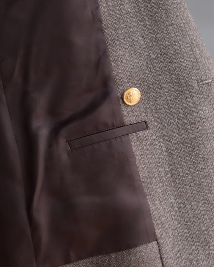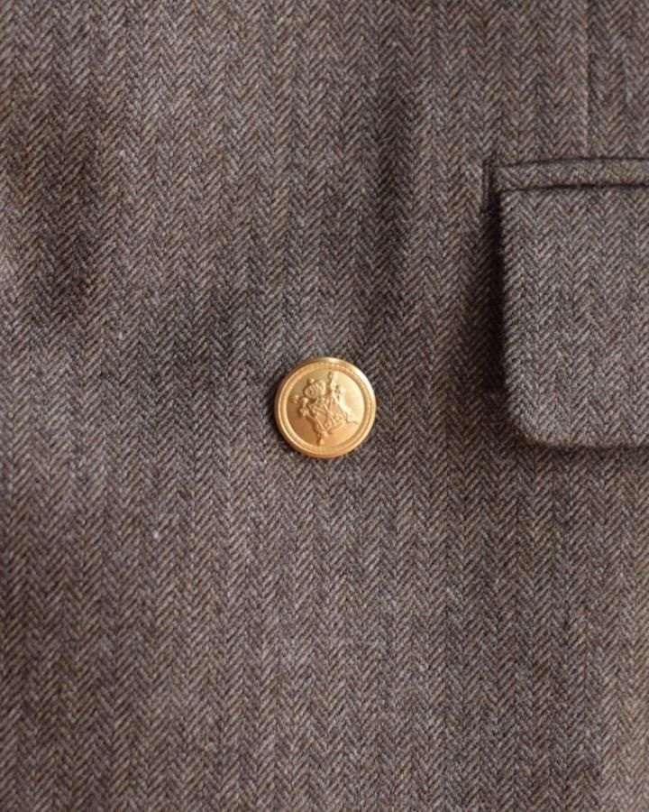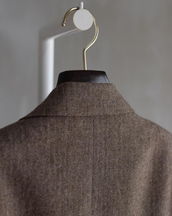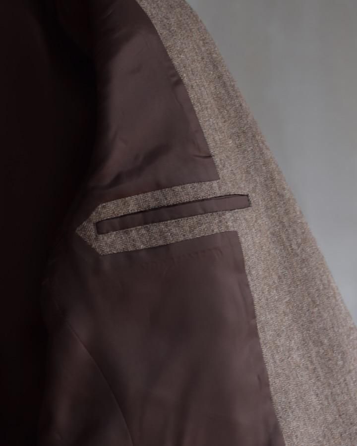 クラシックな印象のヘリンボーン組織のスーツ地を使用。