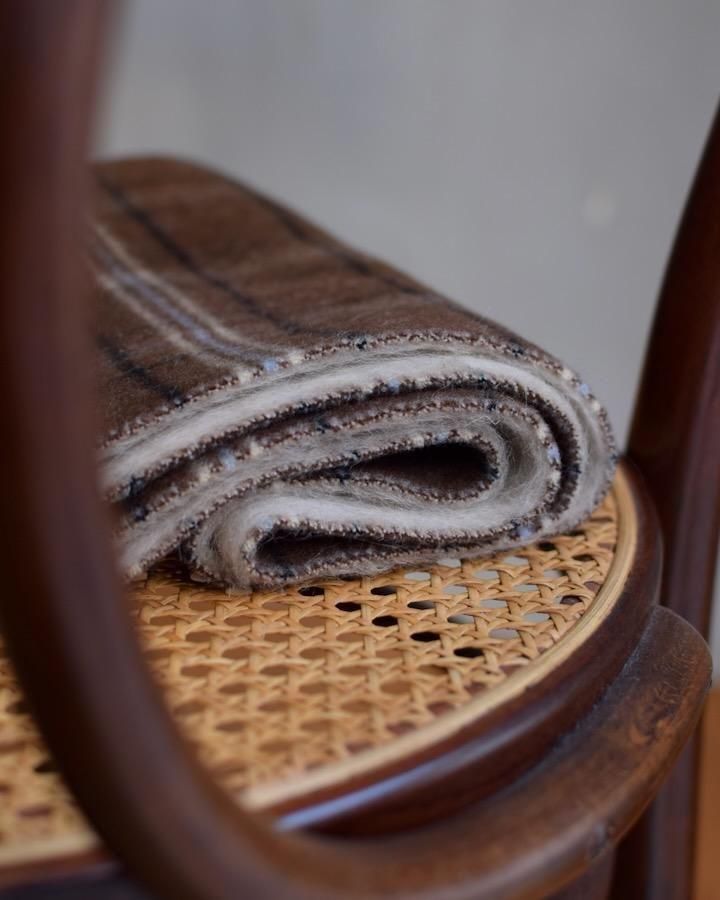 > DOUBLE CHECK WOOL BLEND WALNUT SCARF
