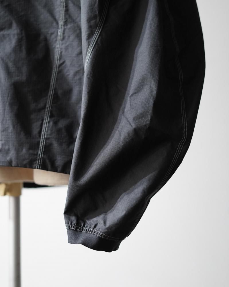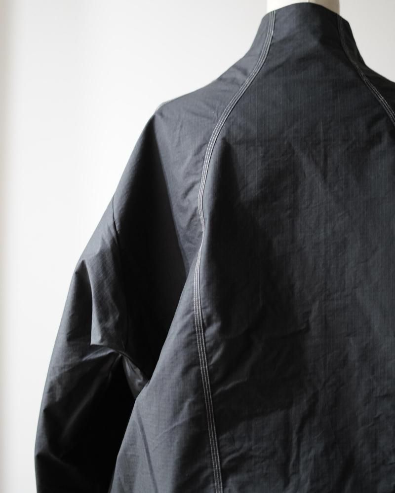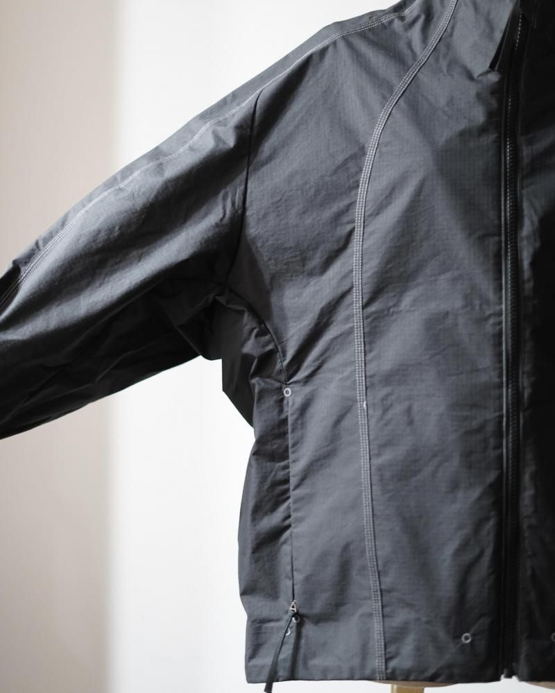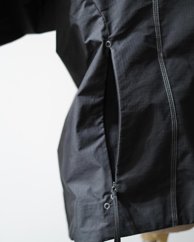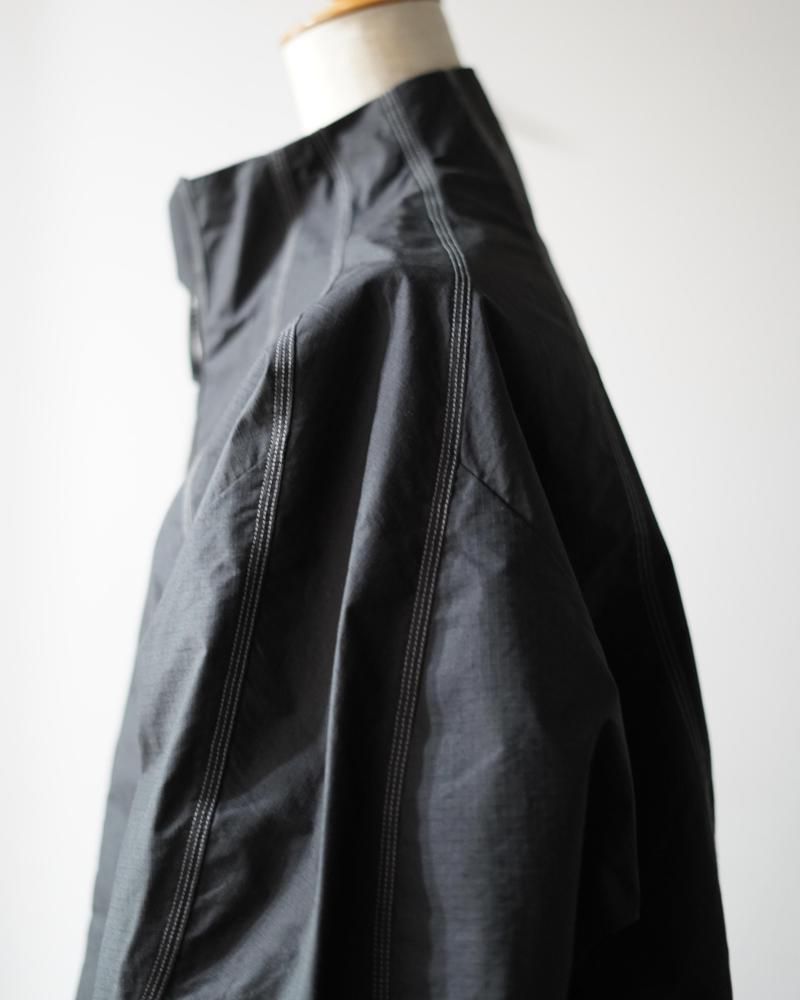 花のつぼみや種子から着想を得たフォルムで全体を縦のパネルで構成する、Goldwin 0のSeed Jacket のコンセプトを発展させたスタンドカラーのジャケット。コーティングを施した、タフなコットンポリエステル高密度リップストップ素材を使用。ハリ感のある素材によって、特徴的なシルエットを描きます。
