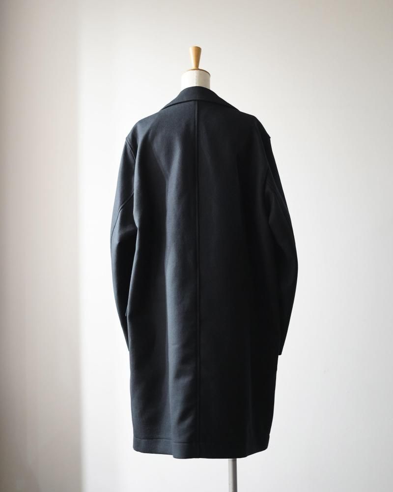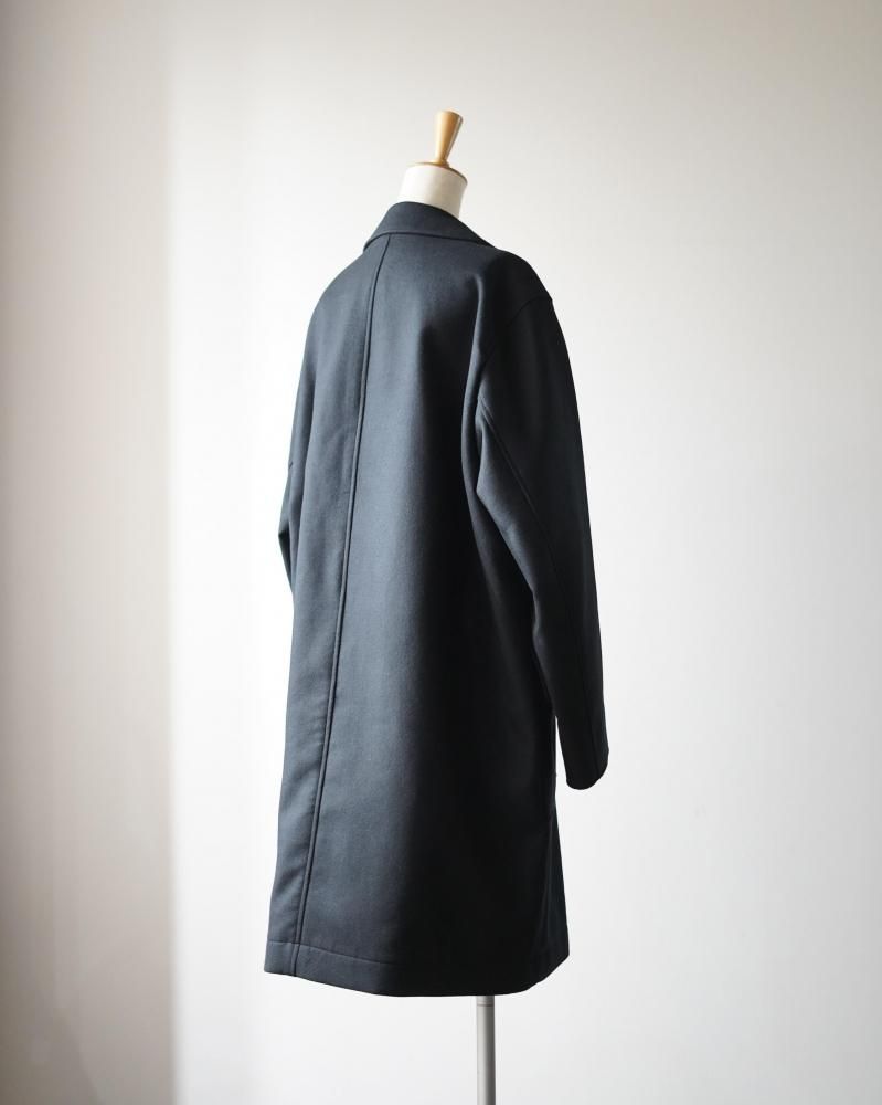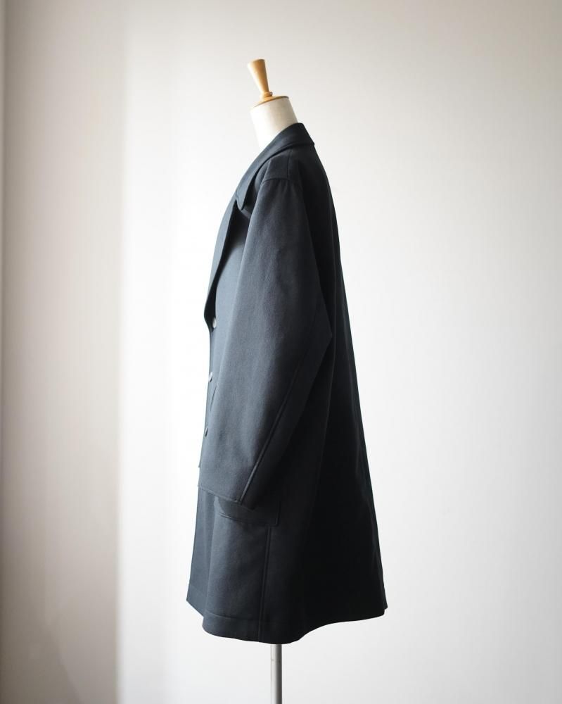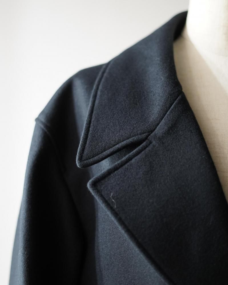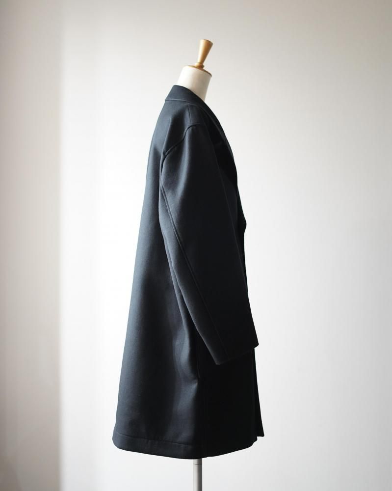 ややゆったりとしたAラインシルエットが特徴のセミダブルコート。身頃には肉厚のコットン裏地を、袖裏にはキュプラ裏地を使用しています。
