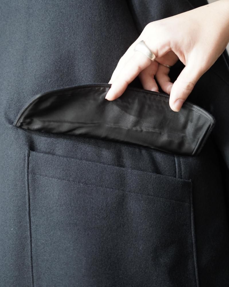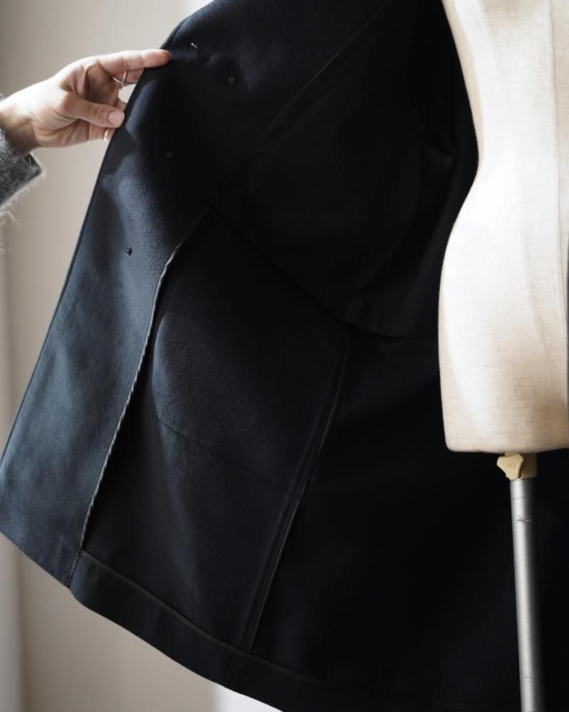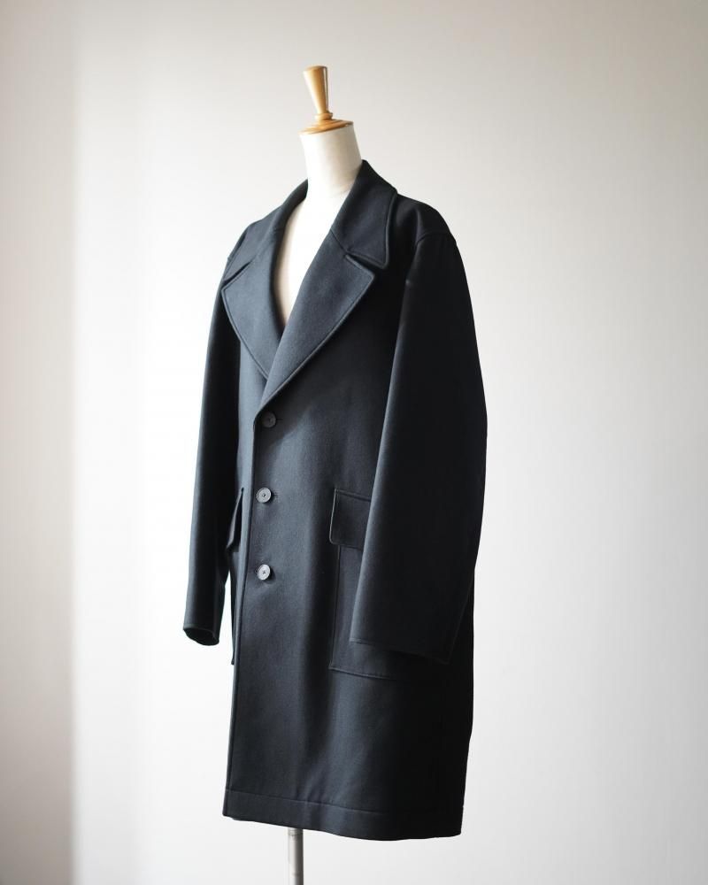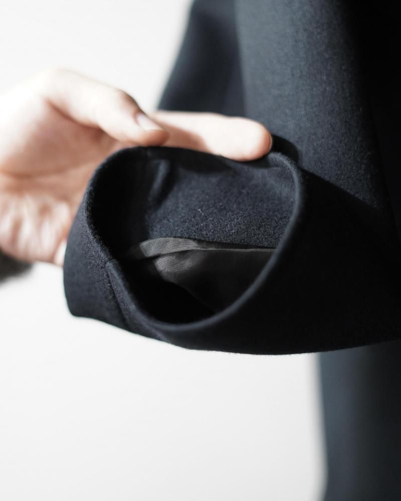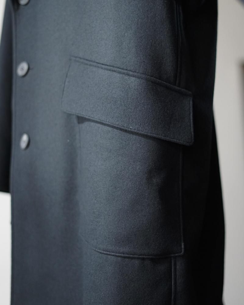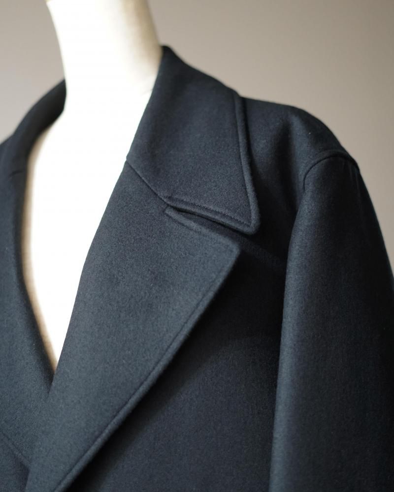 ややゆったりとしたAラインシルエットが特徴のセミダブルコート。身頃には肉厚のコットン裏地を、袖裏にはキュプラ裏地を使用しています。