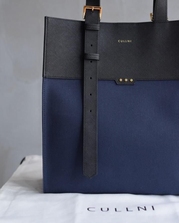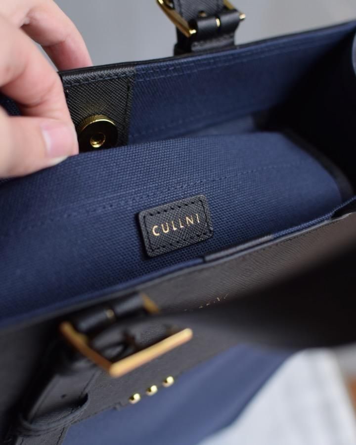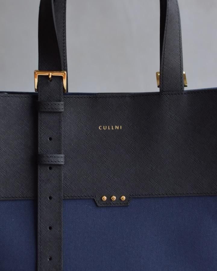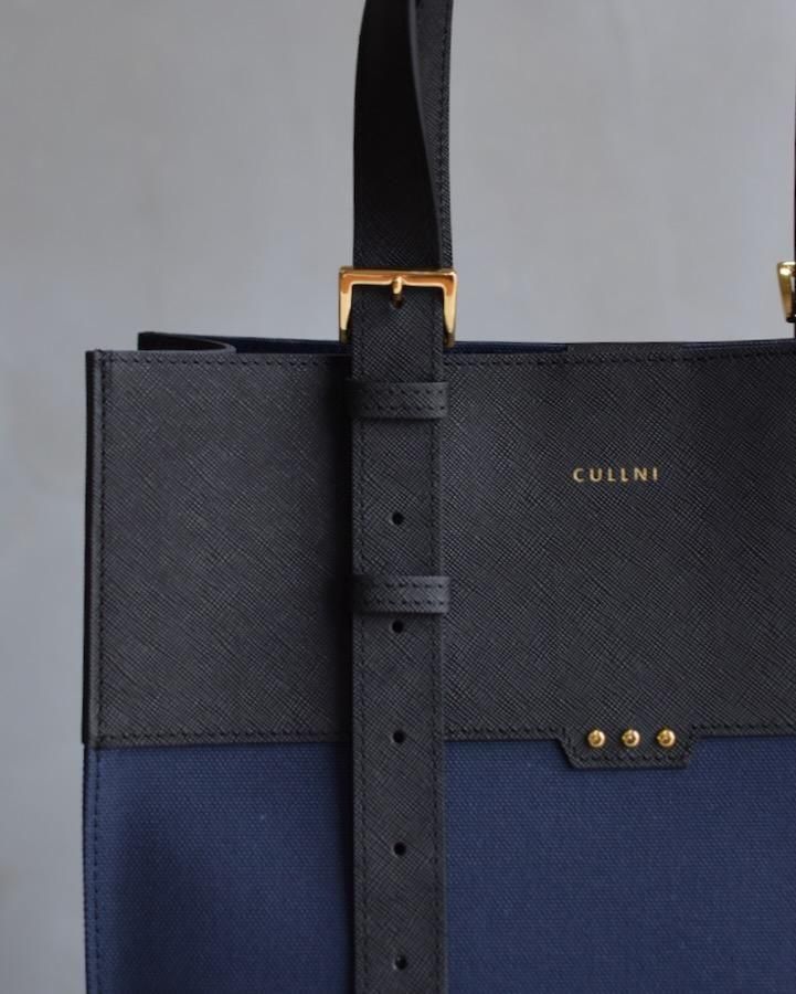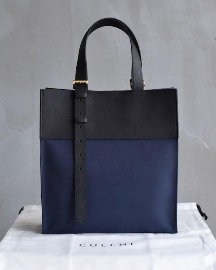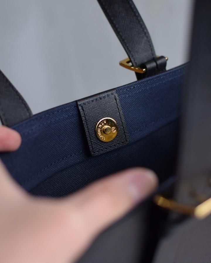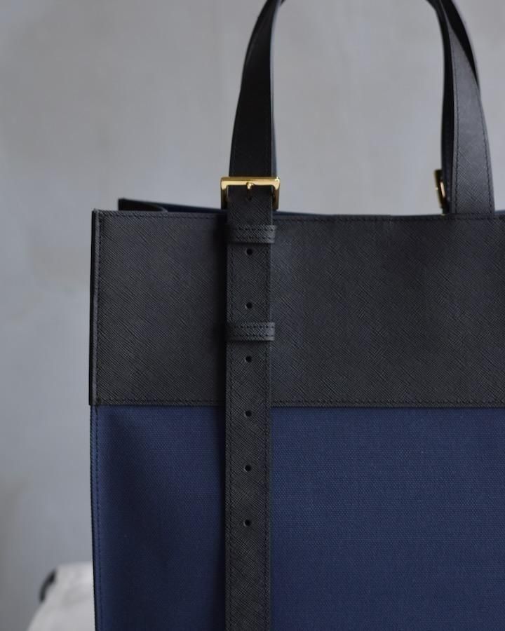 > Leather Belt Handle&Canvas Combination Mini Tote Bag