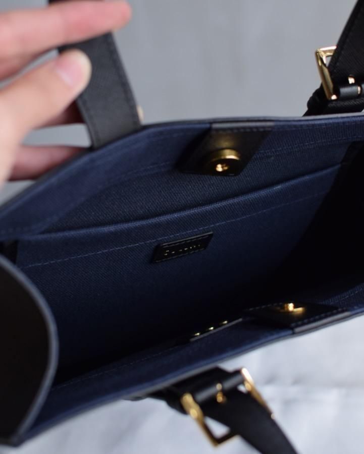 Leather Belt Handle&Canvas Combination Mini Tote Bag