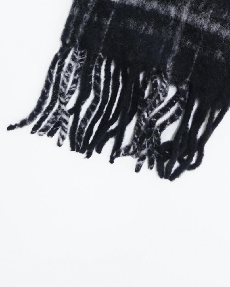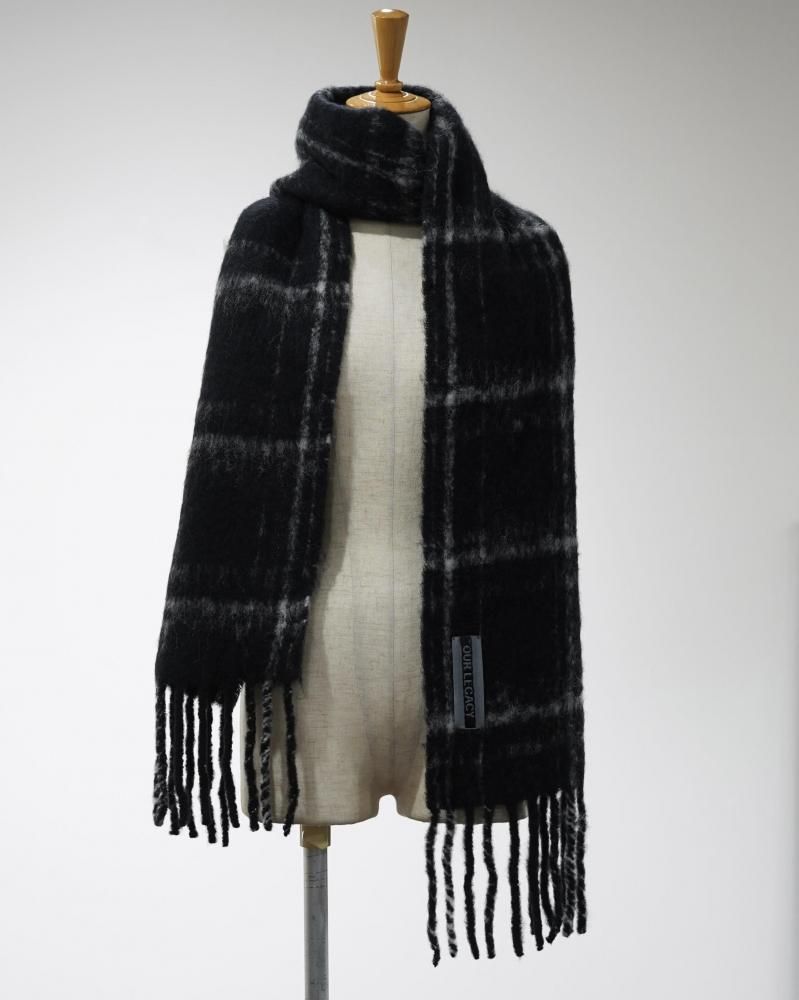 > ESTATE SCARF(Black Fuzzy Alpaca Check)