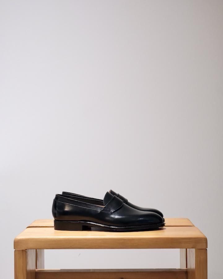 ローファーとしてのデイリーさと、オペラシューズとしてのドレッシーさを兼ね備えた印象に仕上がっています。
