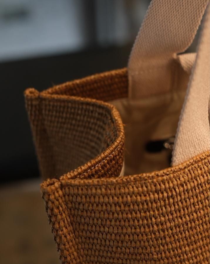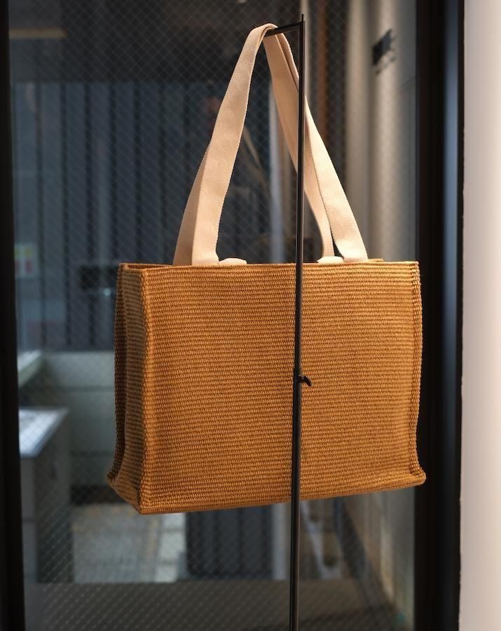 編み込みの横長トートバッグ。