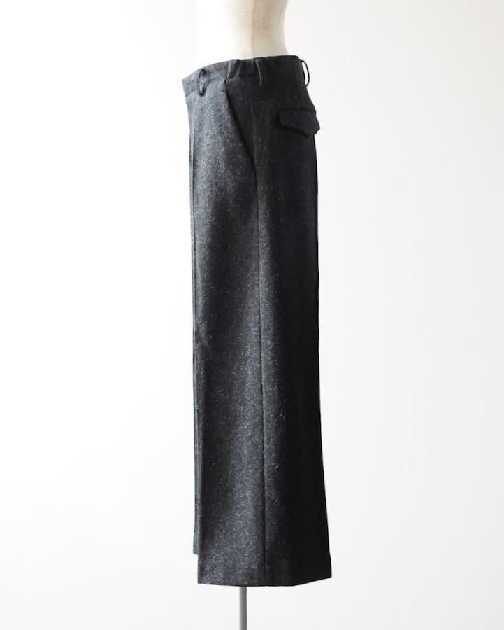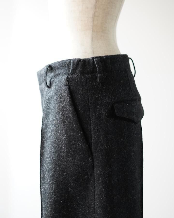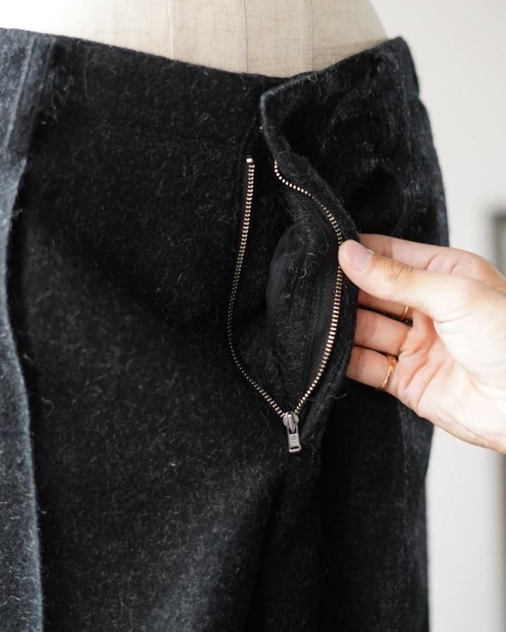 腰回りはすっきりしたボリュームで、裾にかけてしっかりと分量があり、