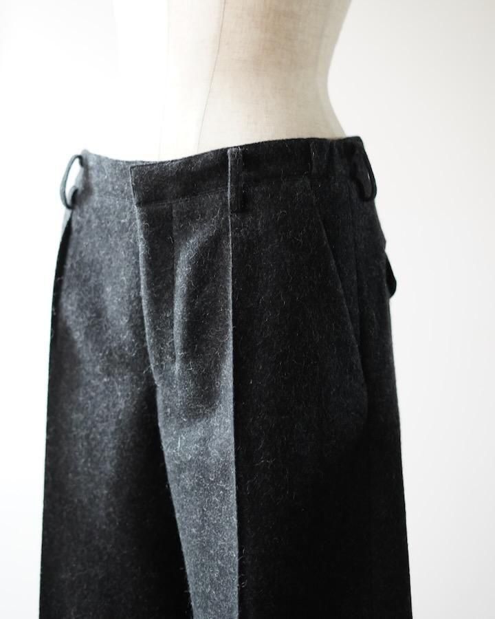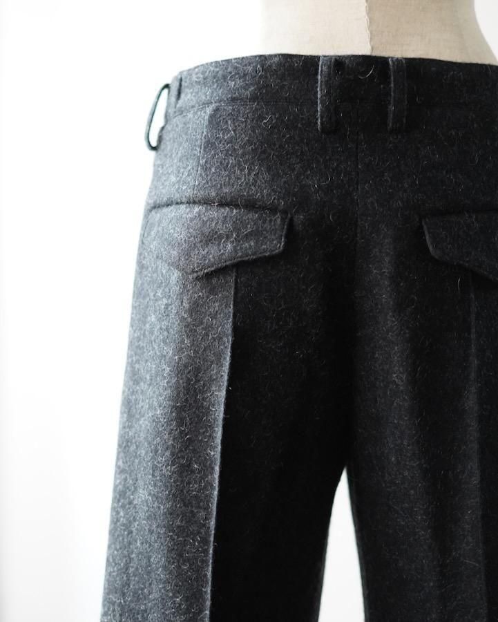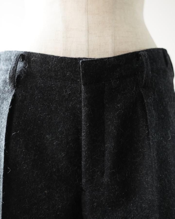 ◎生地は尾州産地にて、モヘア混のケンピ糸を使用したメルトン素材です。