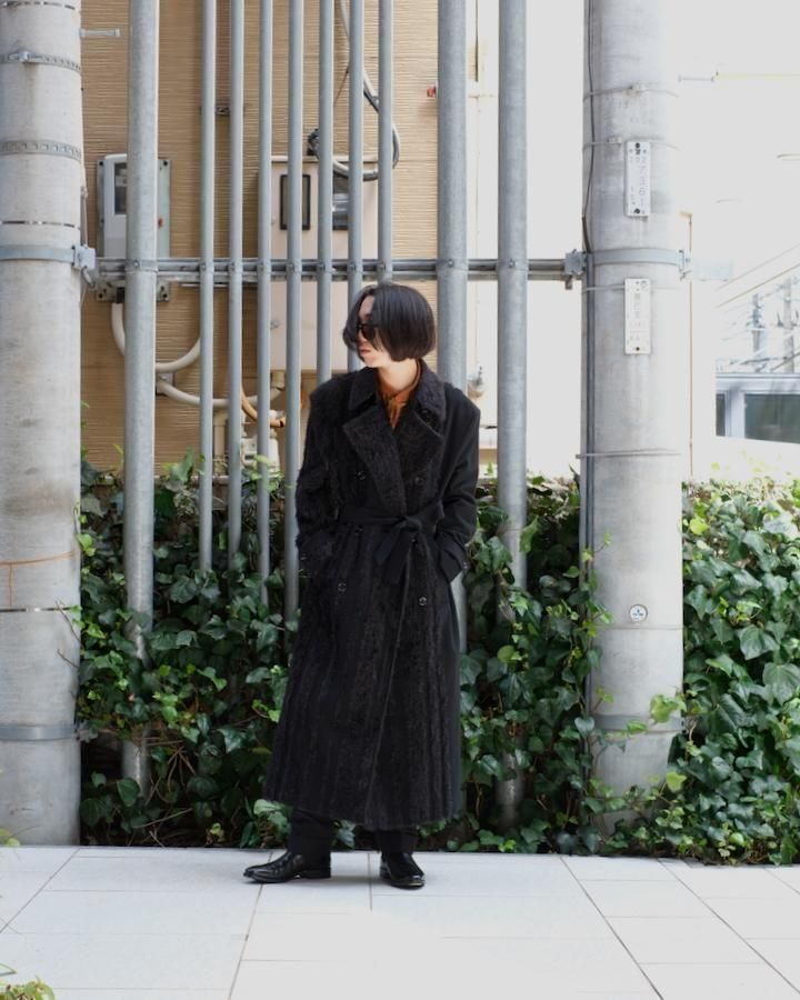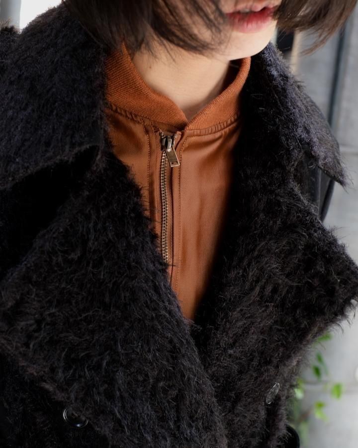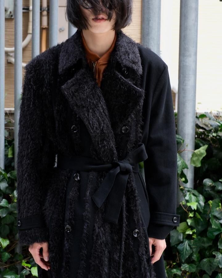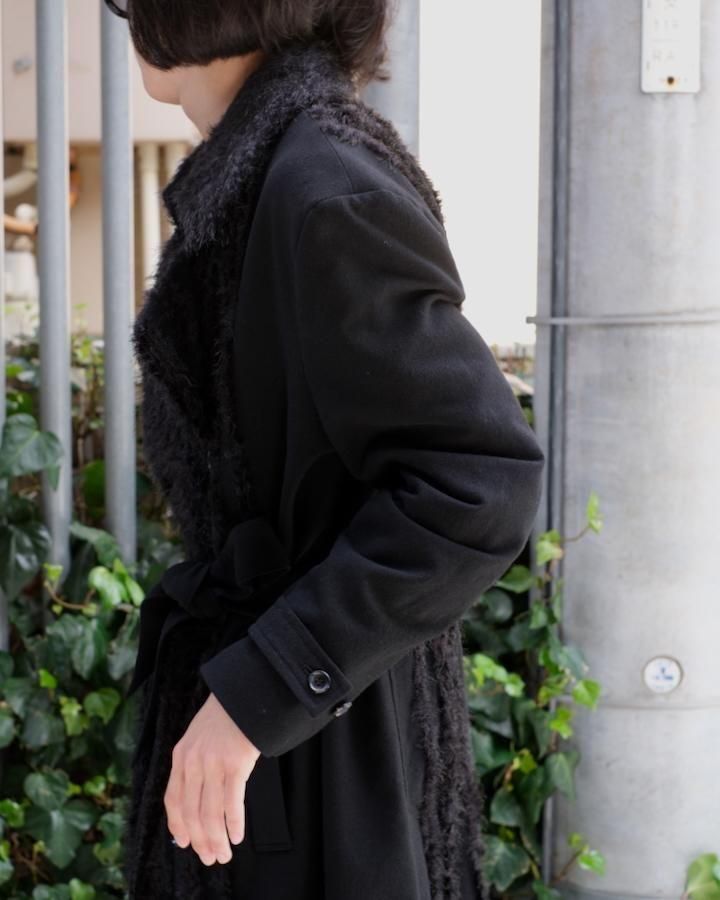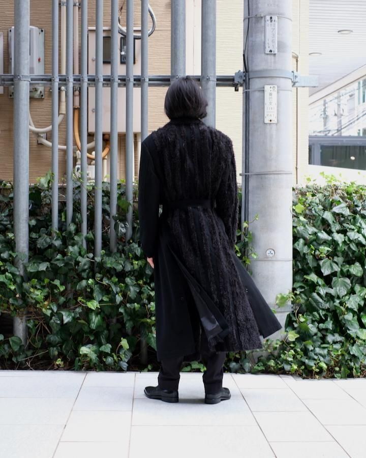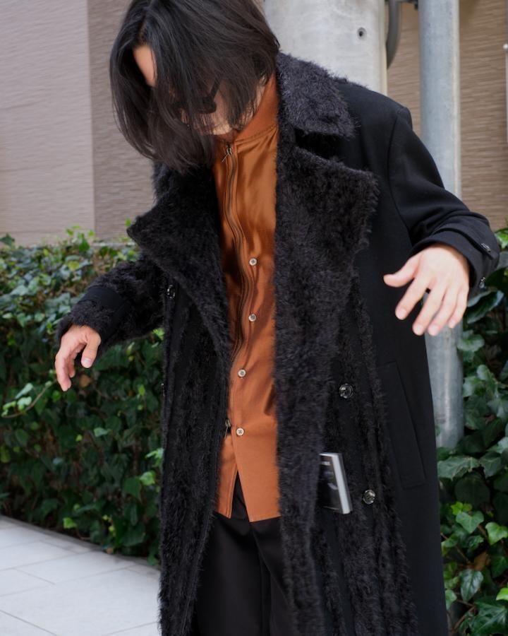 > FUR TWEED DOUBLE BREASTED COAT bk